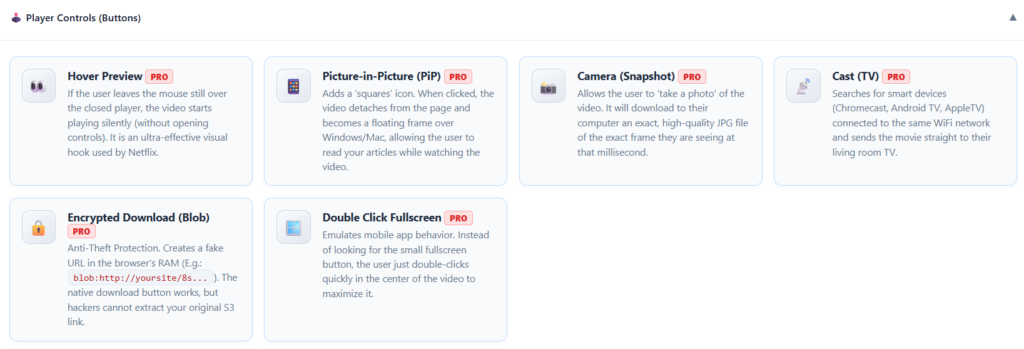 Lee la URL pública directa del objeto S3. Ahorra cientos de dólares en ancho de banda. Requiere inyectar una regla CORS en tu bucket para que el navegador confíe en el video (ver sección 5 de ayuda).🕹️ Controles del Reproductor (Botones)