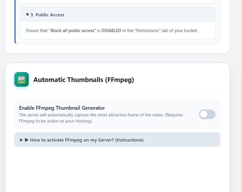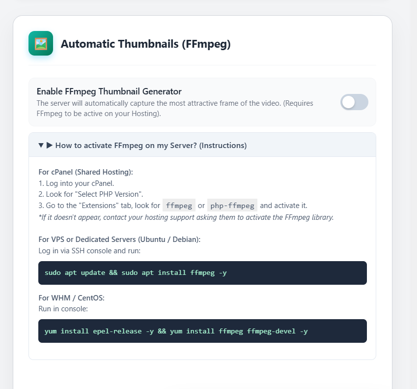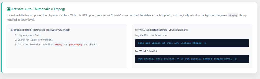 - Auto-Thumbnails: Automatically extract a frame from your video to use as a poster image (requires FFmpeg).