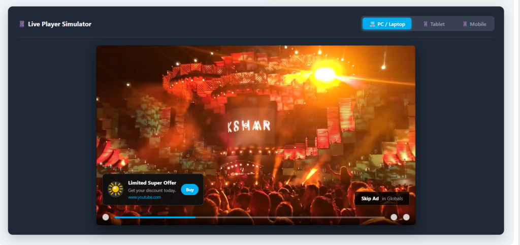 - Non-intrusive Banners: Display elegant image strips at the bottom of the video with close buttons and skip timers.