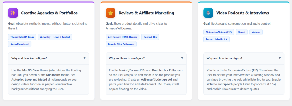 - Hover-to-Play Preview: Emulate Netflix! The video starts playing silently when the user hovers over it, creating an ultra-effective visual hook.