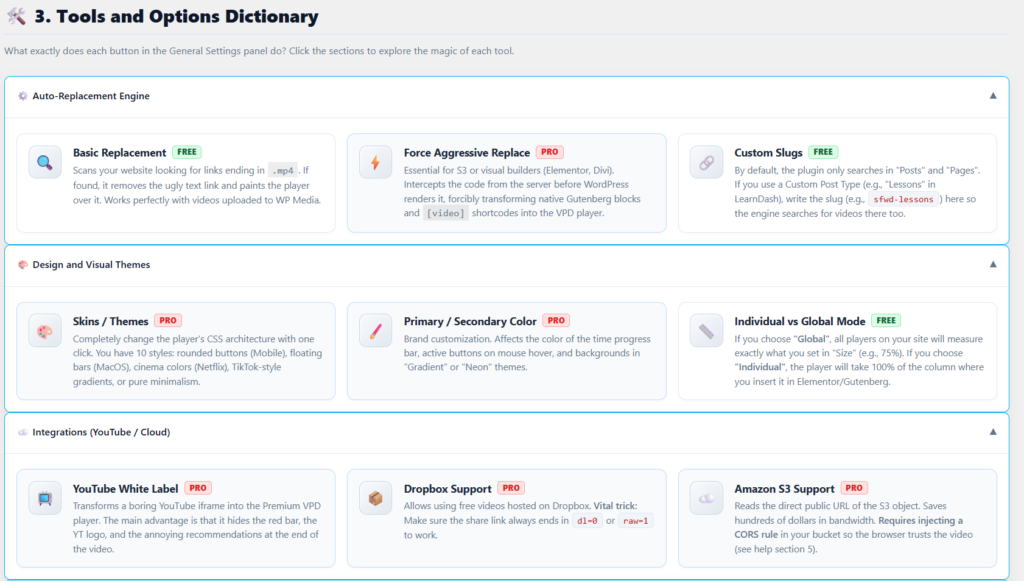 - Aggressive Replace: Force the player to render inside complex visual builders like Elementor or Divi.